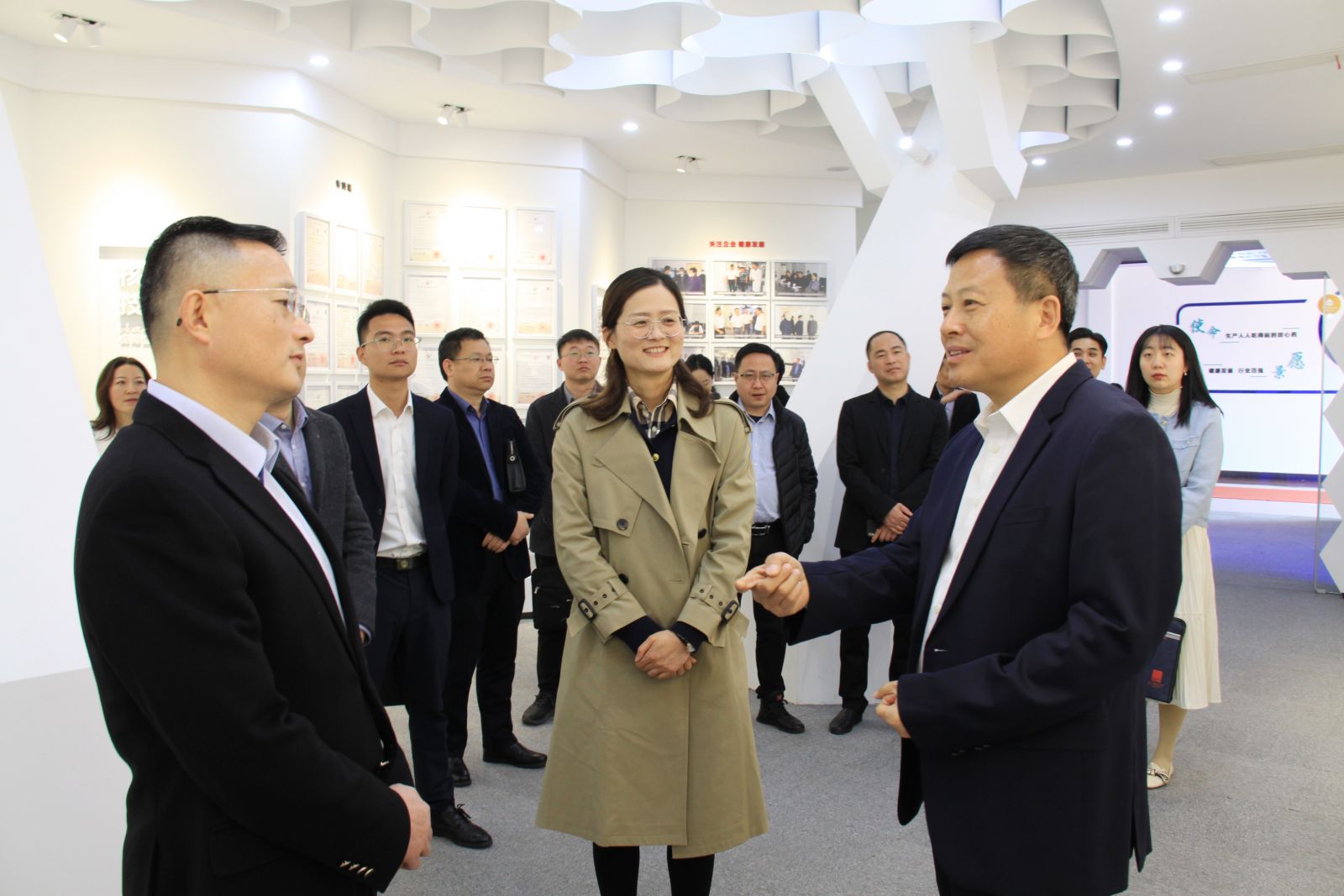 領(lǐng)導(dǎo)們重點(diǎn)參觀了企業(yè)文化展廳,方董對(duì)公司概況、產(chǎn)品領(lǐng)域及研發(fā)創(chuàng)新進(jìn)行了闡述,并著重對(duì)公司重要?dú)v史節(jié)點(diǎn)作了詳細(xì)解說。方董表示:昂利康歷經(jīng)幾十年的發(fā)展,從產(chǎn)品單一到現(xiàn)如今的產(chǎn)品多樣,是不斷求新和努力下的成果,目前,我們?cè)谔厣轮扑幍幕A(chǔ)上逐步向改良型新藥、創(chuàng)新型新藥發(fā)展,這也標(biāo)志著我們?cè)谘邪l(fā)道路上邁出了堅(jiān)實(shí)的一步。回溯過往,從改制到改革、從仿制到創(chuàng)新,從目標(biāo)到愿景,這是多年艱苦奮斗后所留下的歷史足跡,但在發(fā)展的背后,除了離不開團(tuán)隊(duì)的精誠(chéng)合作,也離不開政府領(lǐng)導(dǎo)的幫扶與政策指導(dǎo),正因昂利康在優(yōu)良的營(yíng)商環(huán)境里成長(zhǎng),才有枝繁葉茂的今天。